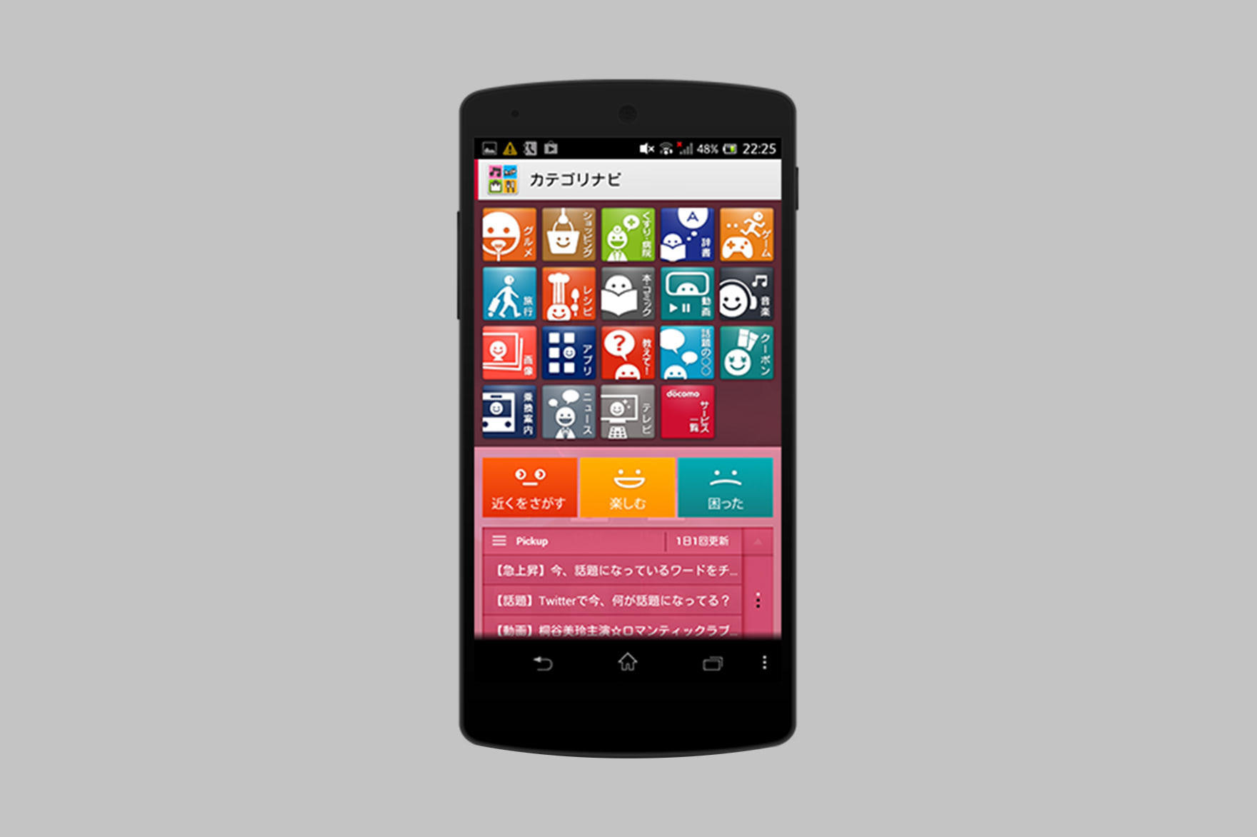 NTTdocomo スマートフォン向け検索サービス「カテゴリナビ」のウィジェット制作とWEBサイトリニューアルに伴う、UI/UX・デザイン制作を担当しました。