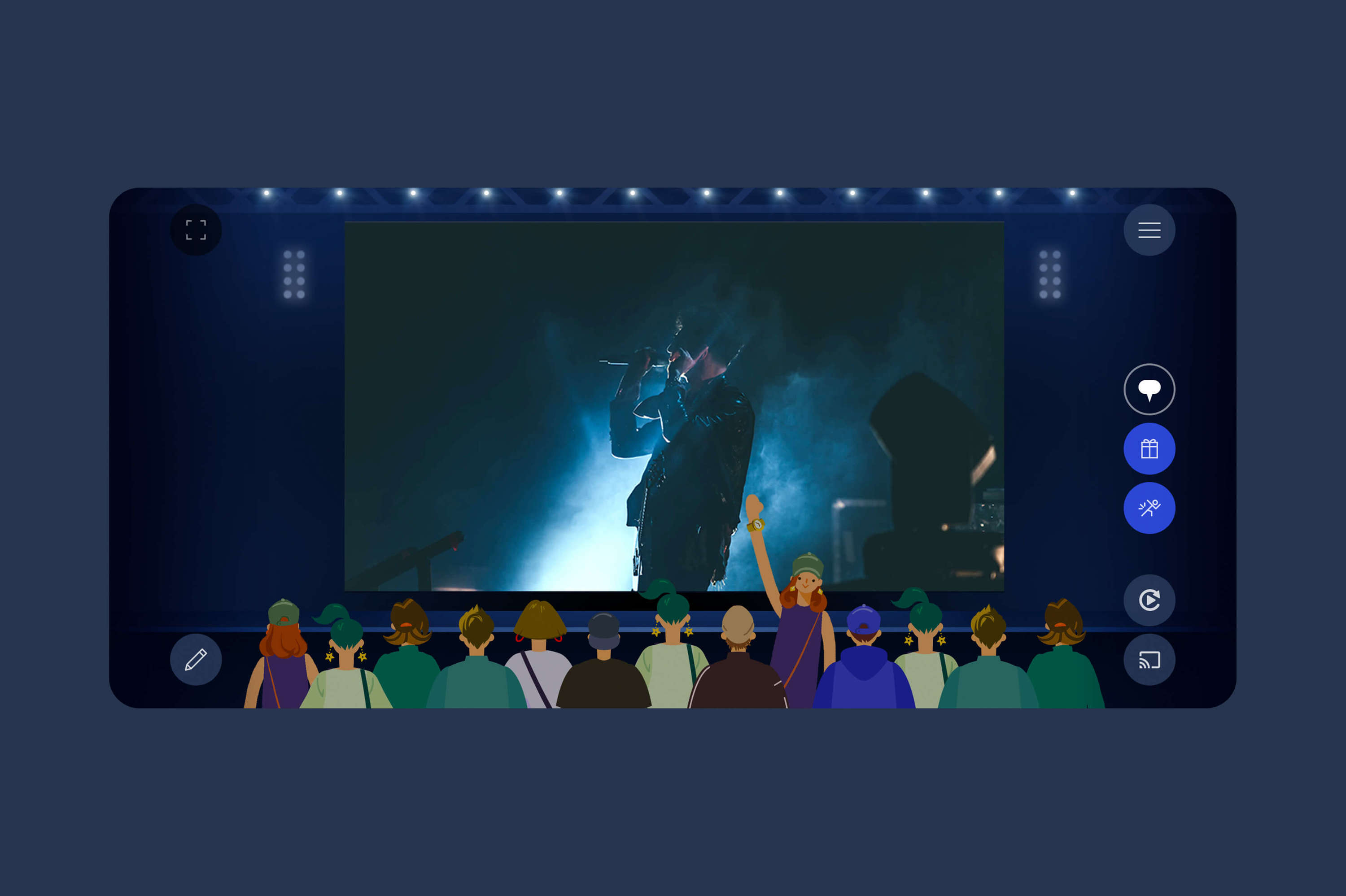 実際のライブ会場にいるかのような疑似体験を提供するために、ステージセットをファンアバターで囲む演出をはじめ、服装やアバターを動かすアクション、ギフトの演出も実際にありそうなものをモチーフとしています。