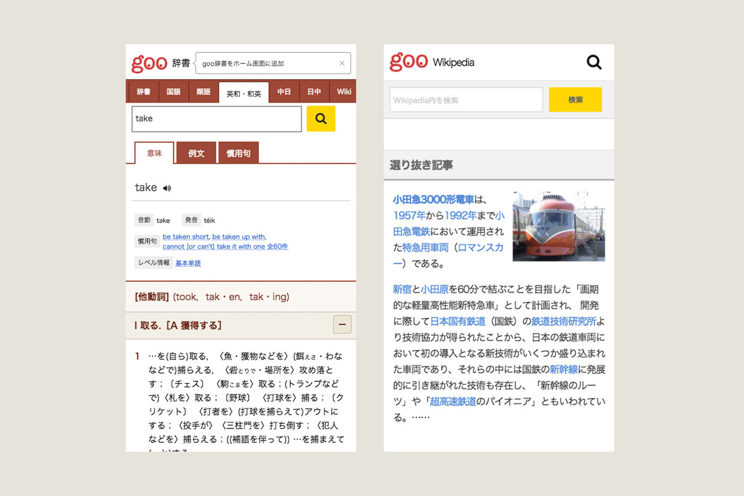 goo辞書、goo Wikipediaのスマートフォン用サイトのUI改善を行いました。