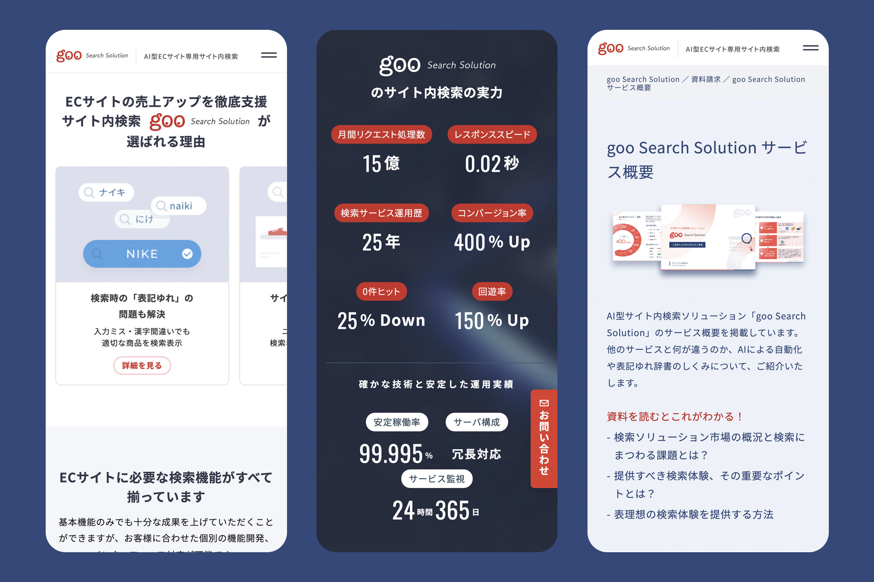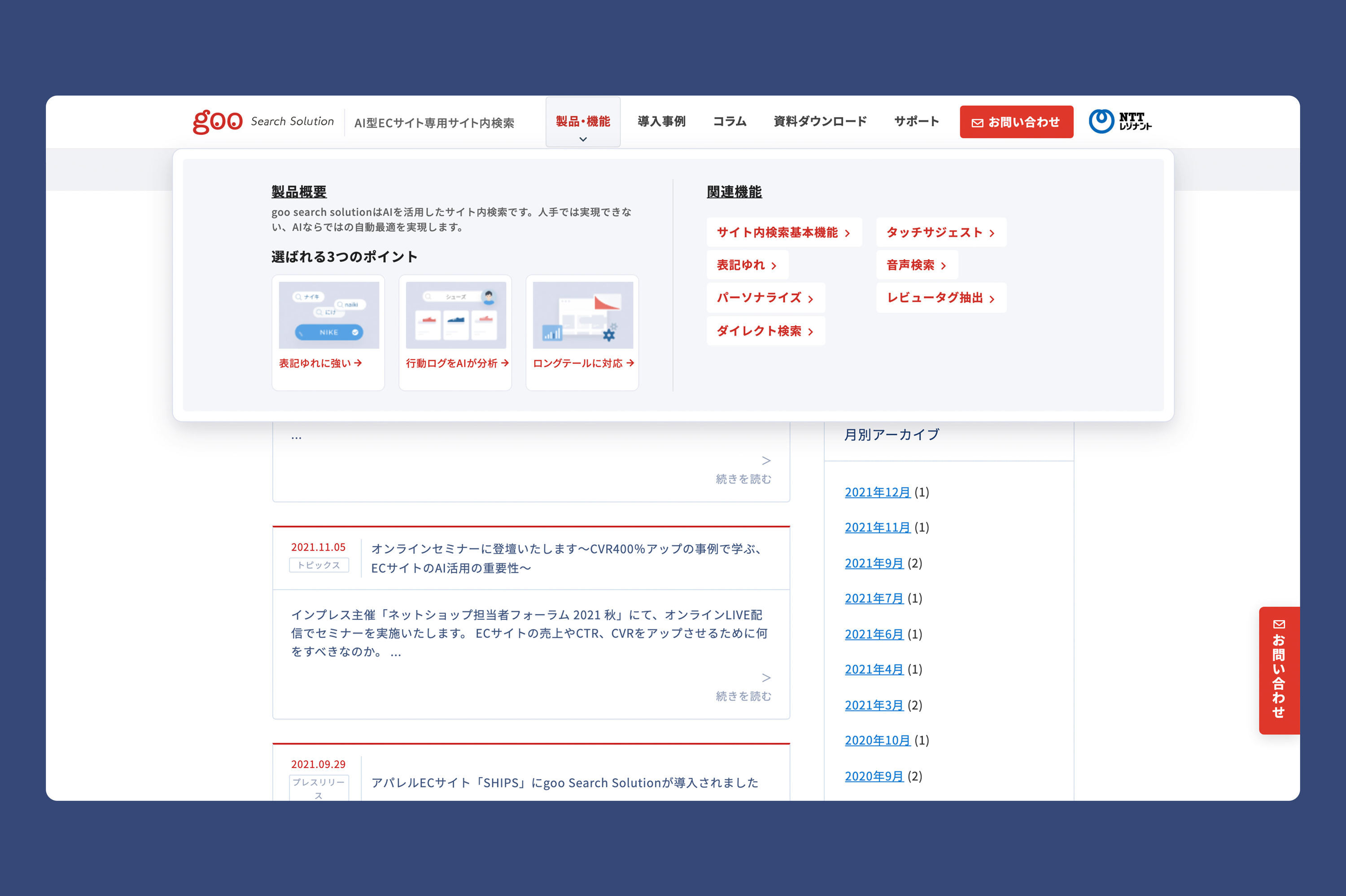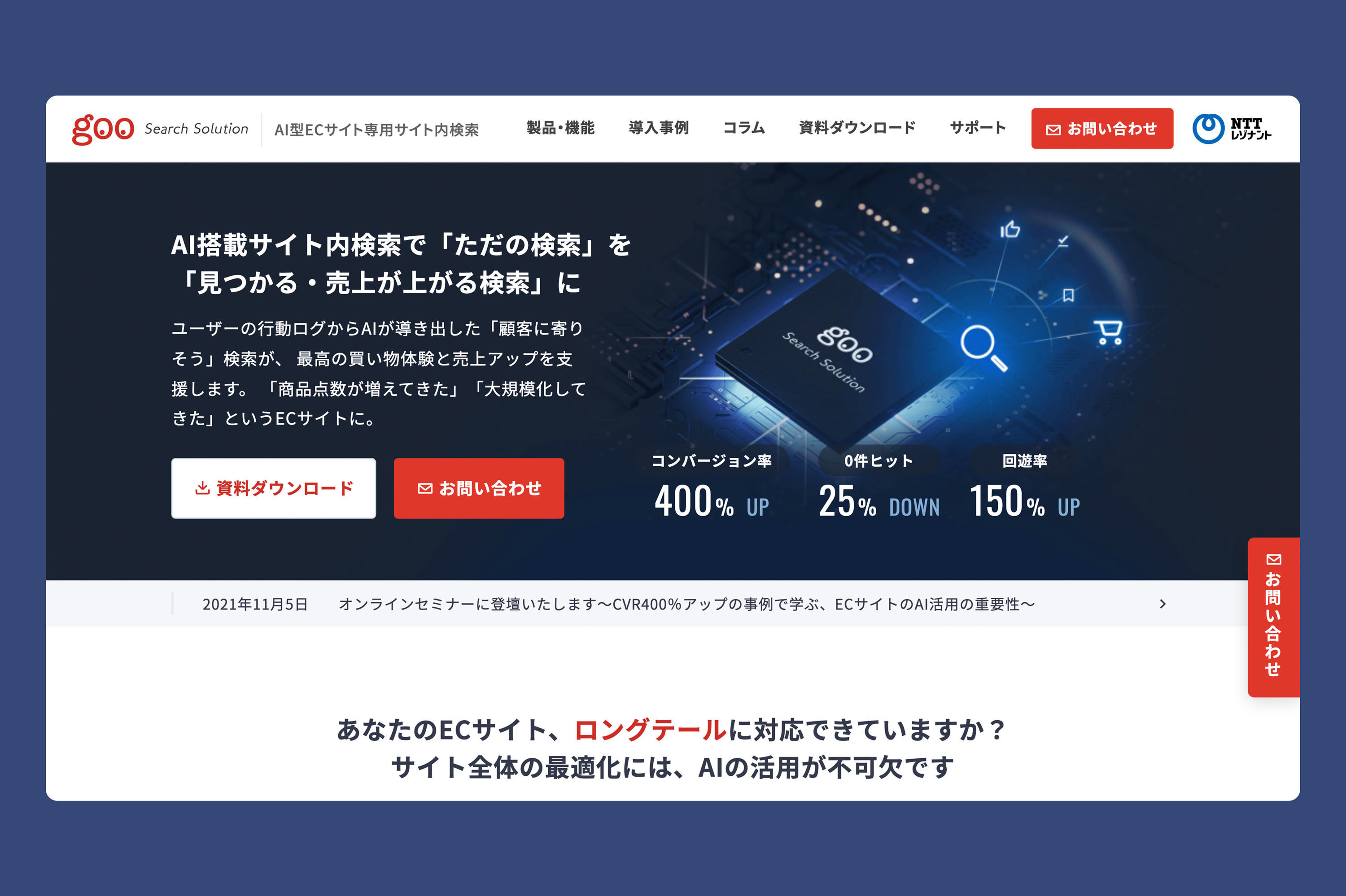NTTレゾナント社のAI型ECサイト専用サイト内検索サービス「goo Search Solution」のWEBサイトリニューアルをハイジ・インターフェイスが担当しました。