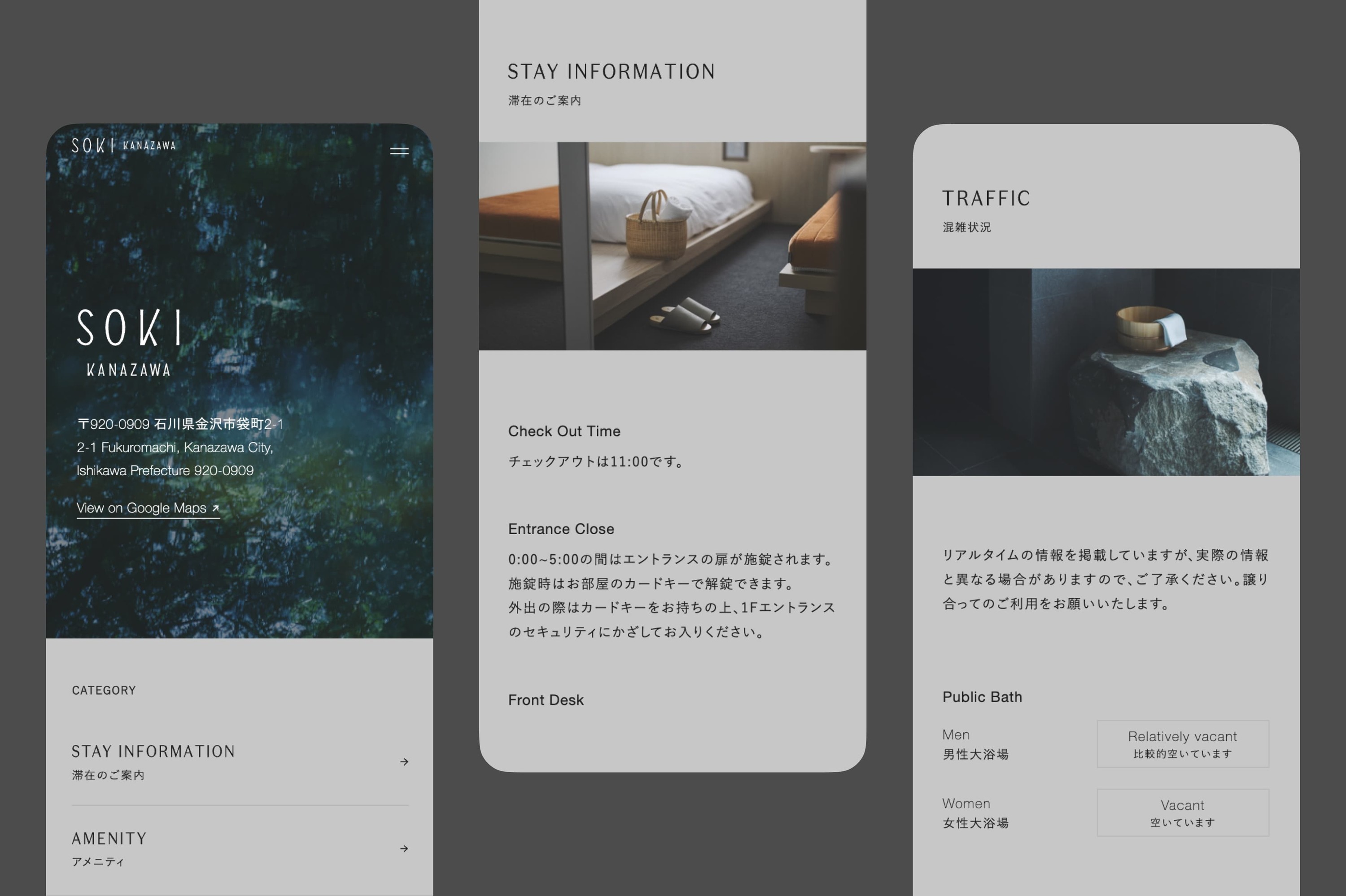 UDS社が手がけるSOKIブランドの温泉旅館「SOKI ATAMI」「SOKI KANAZAWA」の公式サイトの情報設計、開発を担当しました。
