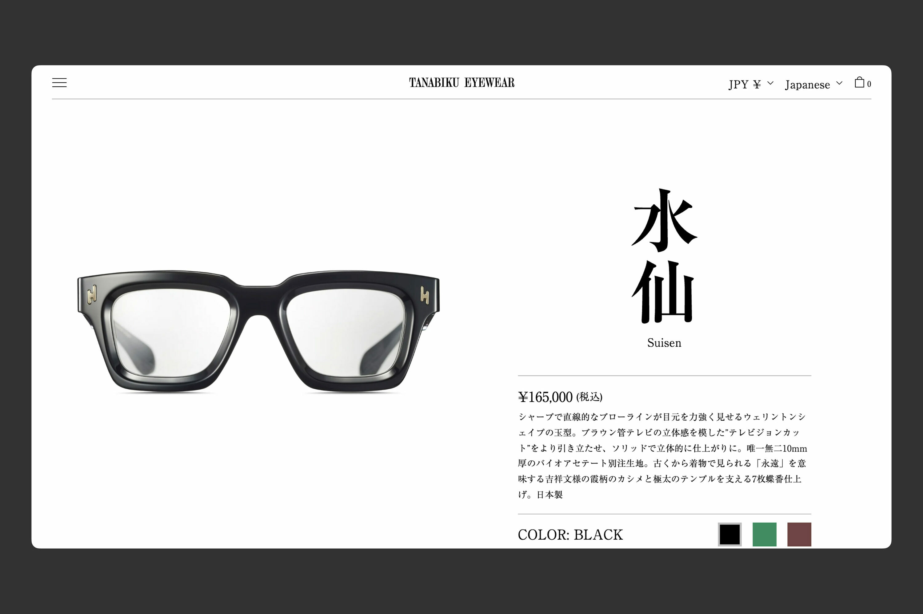 「Made in Japan」のクラフトマンシップを体現する高級アイウェアブランド「TANABIKU EYEWEAR」のECサイトを制作しました