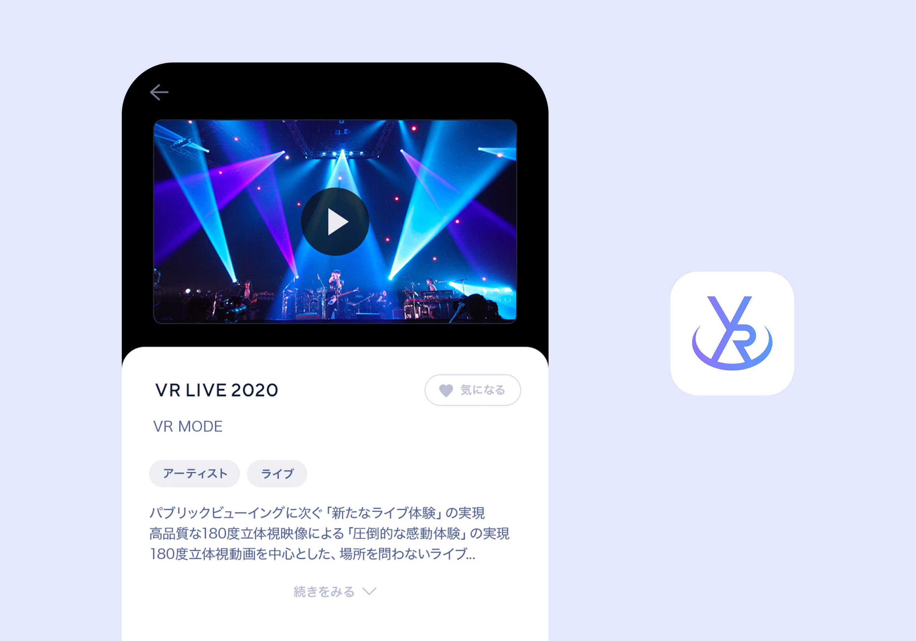 ライブやイベント会場最前列からのアーティストやアイドルなどの迫力ある映像を自宅にいながら手軽に楽しめる次世代型エンターテイメントアプリ「VRMODE」を作成しました。生配信やVOD、VR型写真集といった没入感あふれるVRコンテンツを配信するプラットフォームになります。